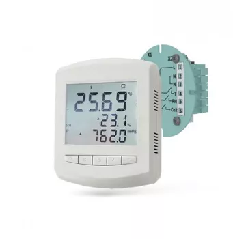 Измеритель-регулятор EClerk-Eco-P-R это современный прибор, предназначенный для непрерывного измерения важнейших для здоровья человека параметров воздушной среды: температуры, относительной влажности, абсолютного давления. Прибор позволяет регулировать температуру и отн. влажность при помощи двухпозиционного регулятора и включать внешнюю сигнализацию при выходе абсолютного давления за установленные границы. Для этого измеритель комплектуется выносным блоком питания и управления нагрузками.