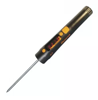 Измеритель температуры IT-7 (термометр-щуп) предназначен для измерения температуры газообразных, жидких и сыпучих сред. Благодаря использованию хромель-алюмелевой термопары К(ХА) прибор имеет очень широкий диапазон измерения от -50 до +900°C.