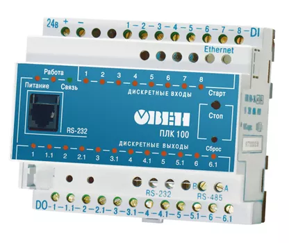 ОВЕН ПЛК100 – моноблочный контроллер с дискретными входами/выходами на борту для автоматизации малых систем