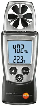- Testo 410-2 - анемометр со встроенным зондом температуры воздуха и встроенным зондом влажности воздуха