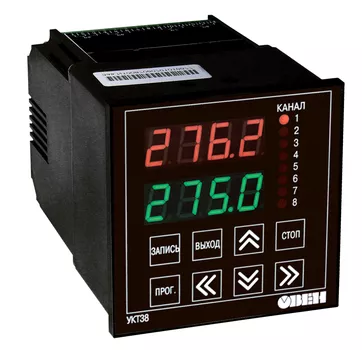 УКТ38 измеритель 8-канальный с аварийной сигнализацией предназначено для контроля температуры, давления, влажности, уровня или другой физической величины в нескольких зонах одновременно (до 8-ми) и аварийной сигнализации о выходе любого из контролируемых параметров за заданные пределы.