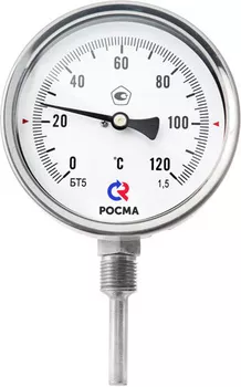 Коррозионностойкий термометр с радиальным присоединением предназначен для измерения температуры агрессивных жидкостей и газов. Принцип действия термометров БТ основан на зависимости деформации чувствительного элемента от измеряемой температуры. В качестве чувствительного элемента используется биметаллическая пружина. Биметаллическая пружина изготавливается из двух прочно соединенных металлических пластин, имеющих различные температурные коэффициенты линейного расширения. При изменении температуры пружина изгибается и вращает стрелку термометра. Один конец пружины закреплен внутри штока, а к другому присоединяется ось стрелки.
